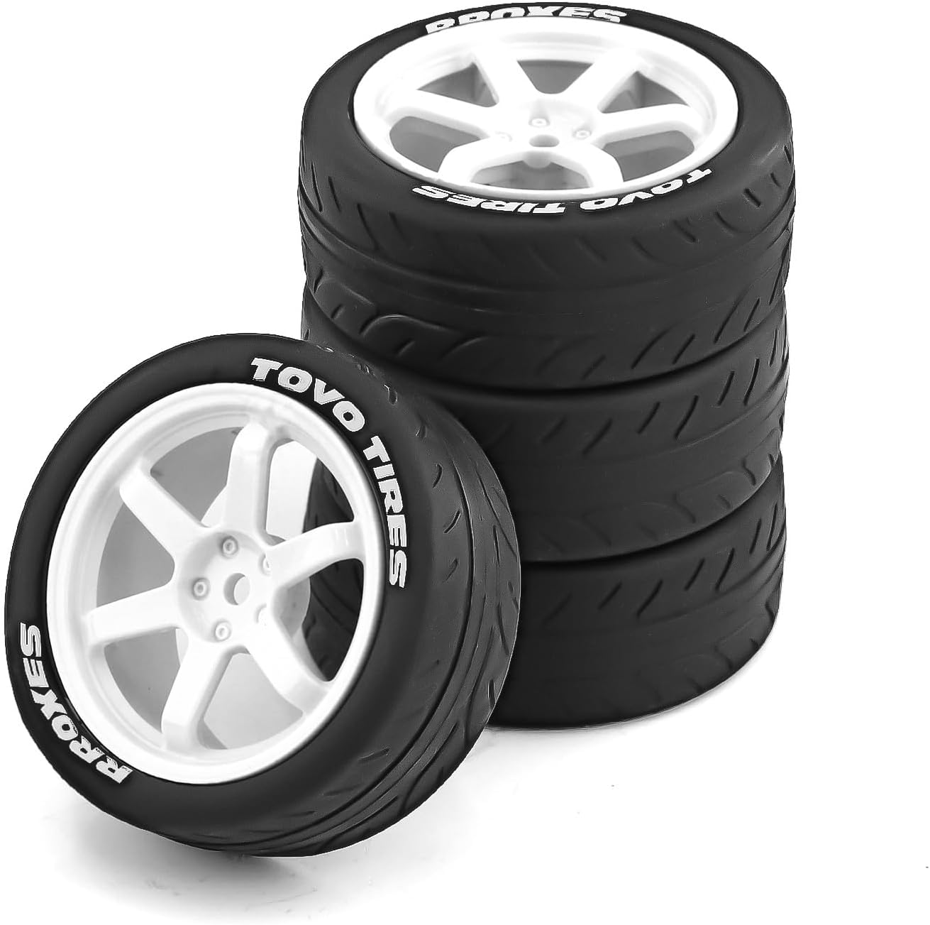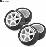 1/10 RC Rally Racing Tires And Hard Plastic Drift Wheels 12mm Hex On Road Tyres For 1:10 Touring Street Car Tamiya TT01 TT02 XV01 TA06 A959 PTG2 144001 HPI KYOSHO HSP PTG2 Traxxas 4PCS (White)