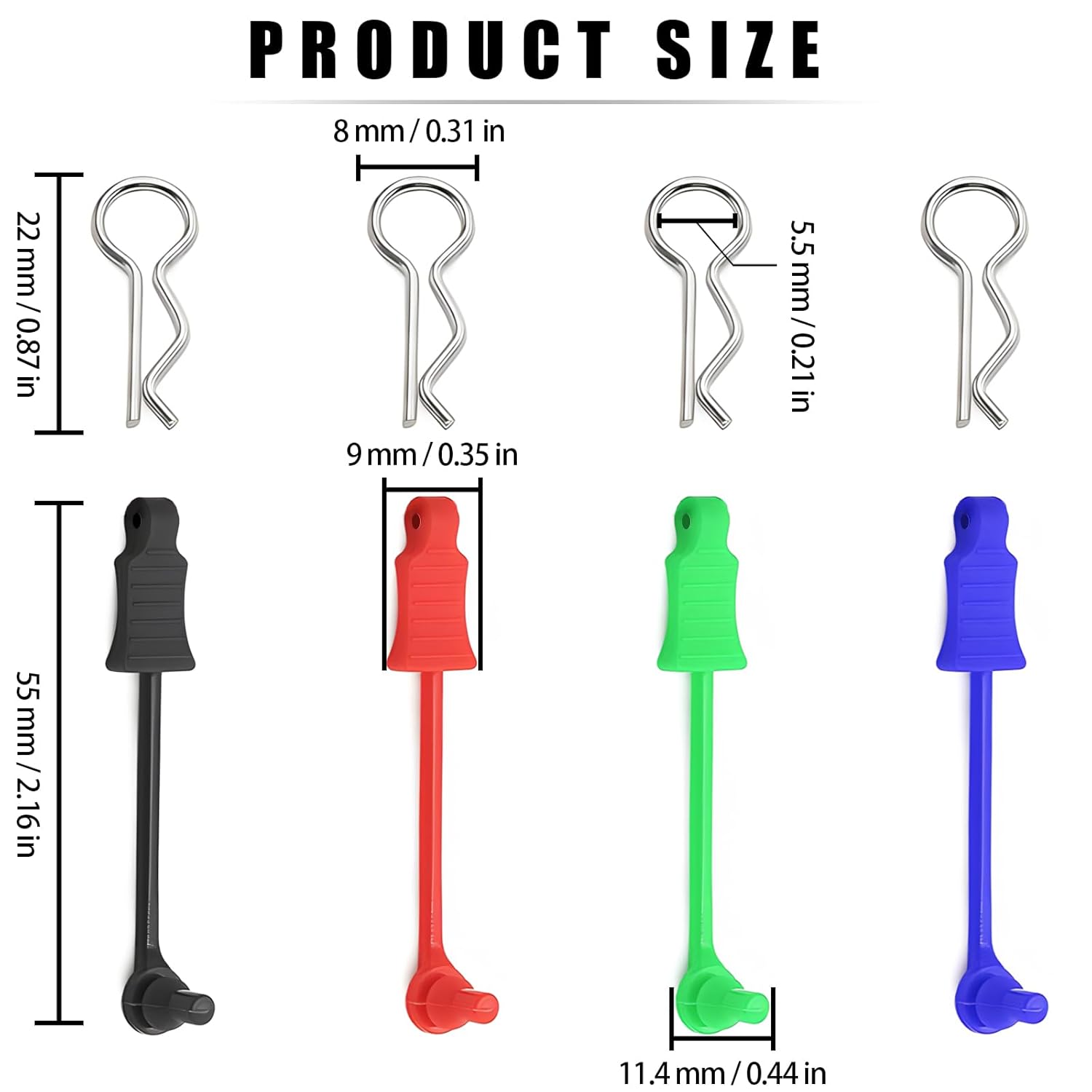 4. Practical Design: Featuring a bent-end design, the R clips hold tightly to the posts on the car, serving as a perfect replacement for stock clips. The small rubber tabs simplify insertion and removal, facilitating battery changes, charging, and vehicle maintenance.