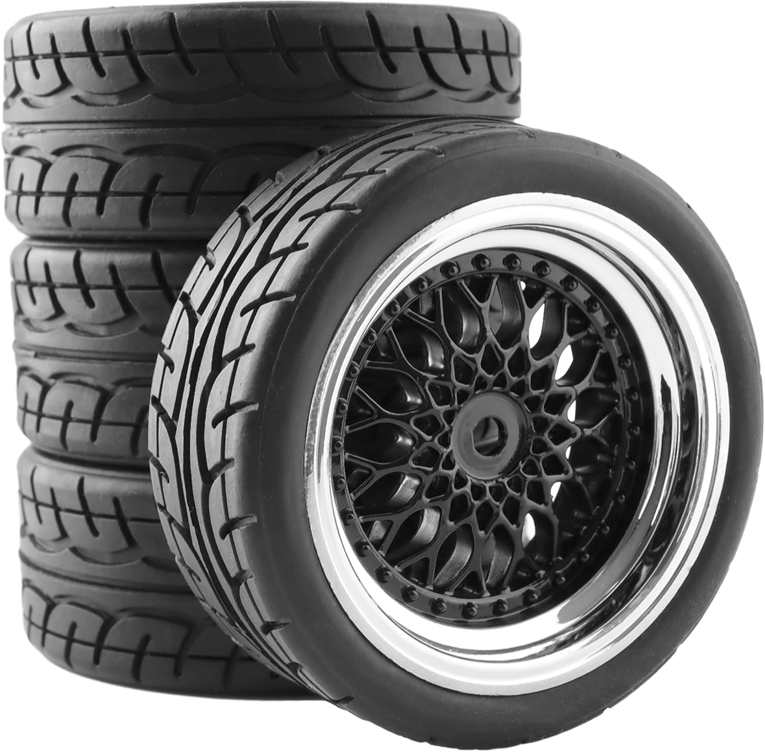 4PCS 12mm Hex Hub RC Cars Wheels and Tires,62mm On Road Touring Rubber Racing Rally Tires Set for 1:10 1:16 1:18 XV01 TT01 TT02B HSP 94122 94123 94103 3850 3851 FW06 16889 RC Cars(Black)