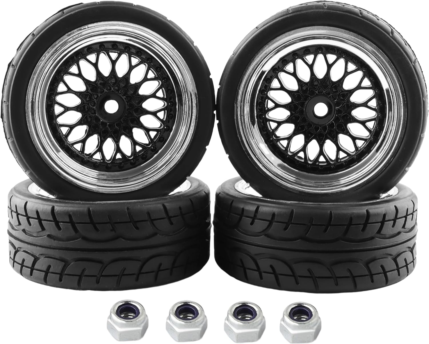 Package Inclueded : 4 Pieces RC Car Tires Wheels and 4 Pieces Wheel Lock Nut(The tire is not glued on rim. It’s mounted on rim with foam inserted)