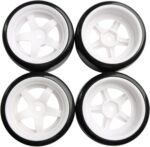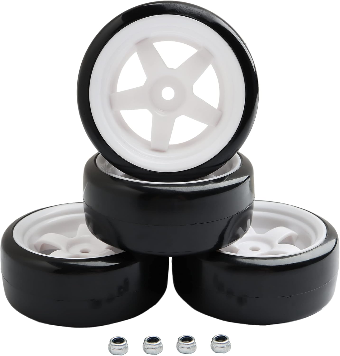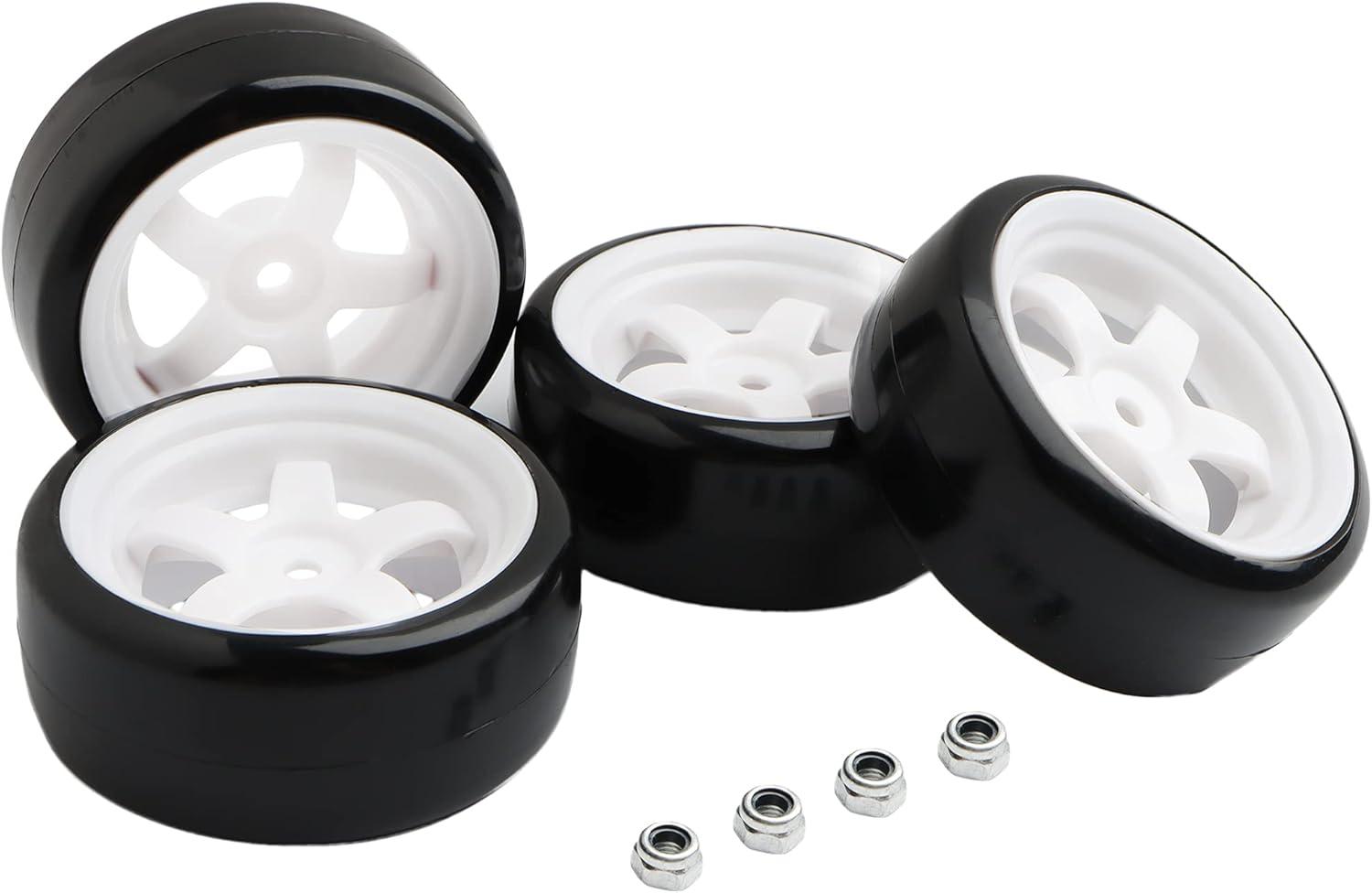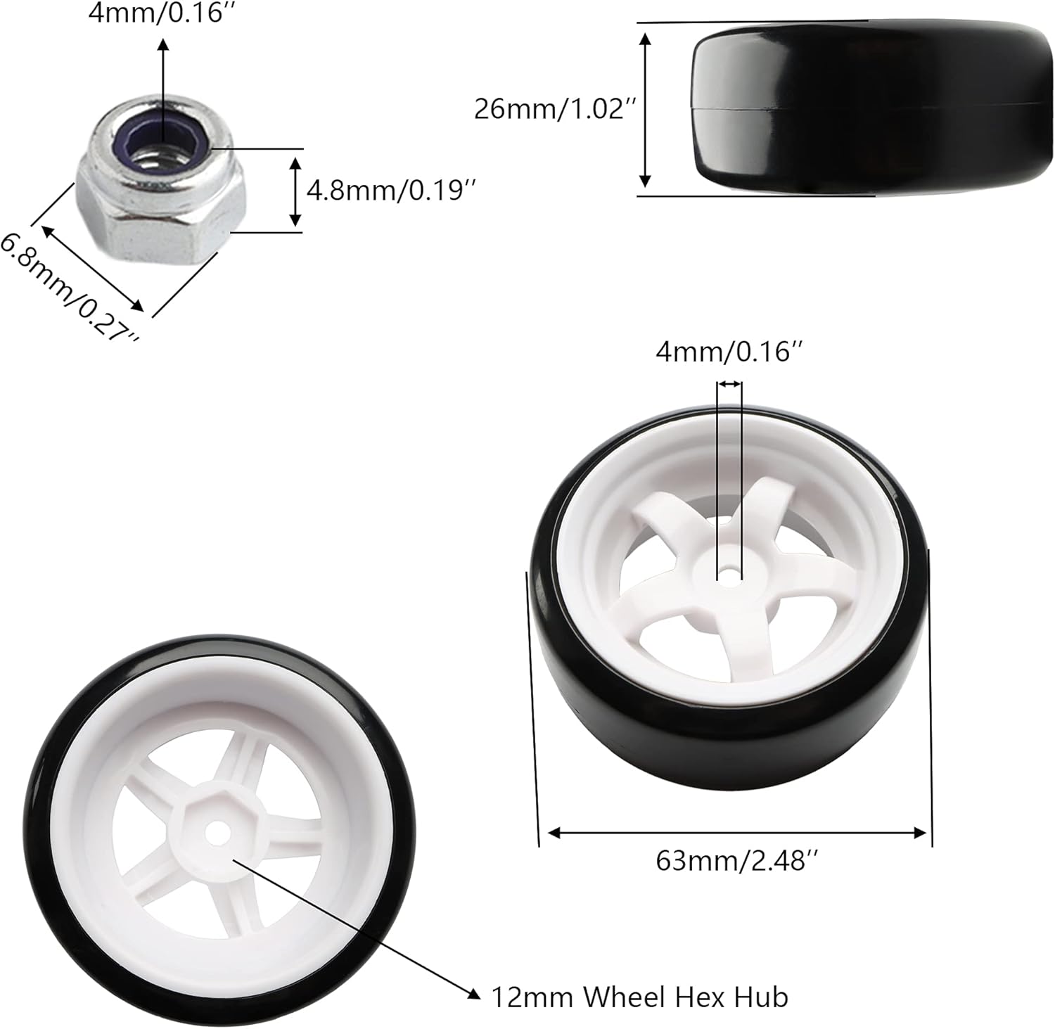 4PCS 12mm Hub Wheels,1:10 63mm Hard Plastic RC Drift Cars On Road Touring Racing Bald Tires for Traxxas HSP Tamiya HPI Kyosho On-Road Drifting Car Trucks(White)