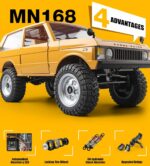 Durable Construction: With the upgraded chassis, metal beams, a tough PVC shell and a high-strength roll cage, which makes the MN-168 4×4 off-road truck a reliable choice for both indoor and outdoor racing adventures.